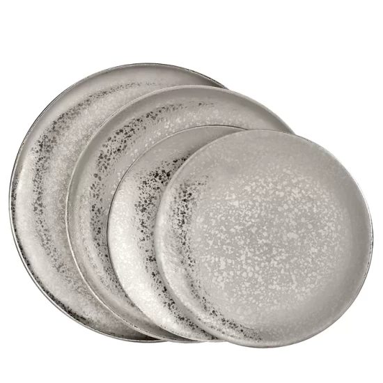 Bring an eye-catching touch to the table with this lustrous charger plate. A modern interpretation of Venice’s timeless mélange of textures, color, and light, the Alchemie de Venise collection is beautifully crafted from earthenware, then highlighted by a striking platinum or 24K gold finish.