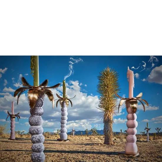- Inspired by the otherworldly landscape of Joshua Tree, custom-glazed porcelain is combined with brass in this imaginative candlestick