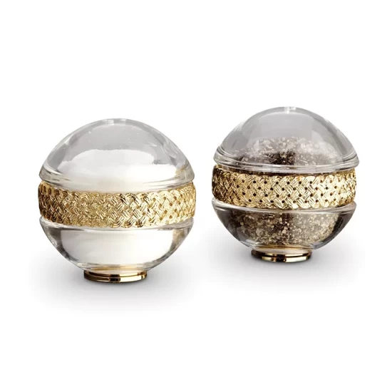 Artisanal 24K gold-plated metal braided details artfully distinguish these sculptural handcrafted table accents from L’Objet.