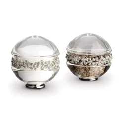 Sparkling crystals and artisanal metal details artfully distinguish these sculptural handcrafted table accents from L’Objet.