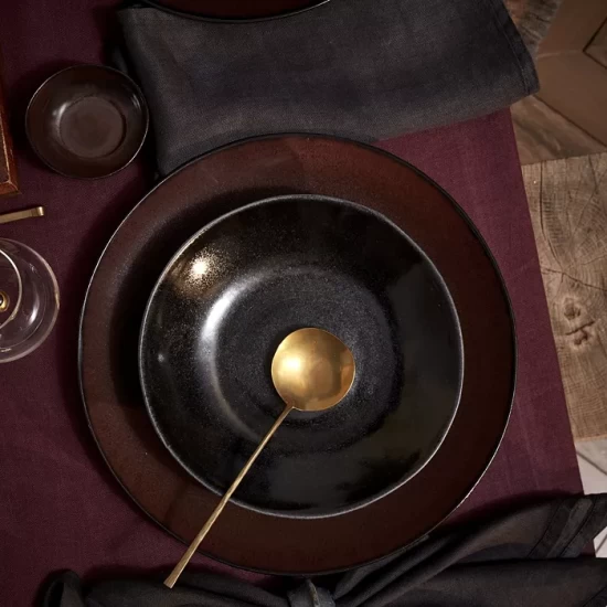 Introduce original design to your tablescape with the refined, organic shapes and shades of L’Objet Terra Dinnerware. Handcrafted and glazed in Portugal, the collection’s porcelain pieces feature glazed finishes in earthy colors reminiscent of leather, stone, wine and iron.